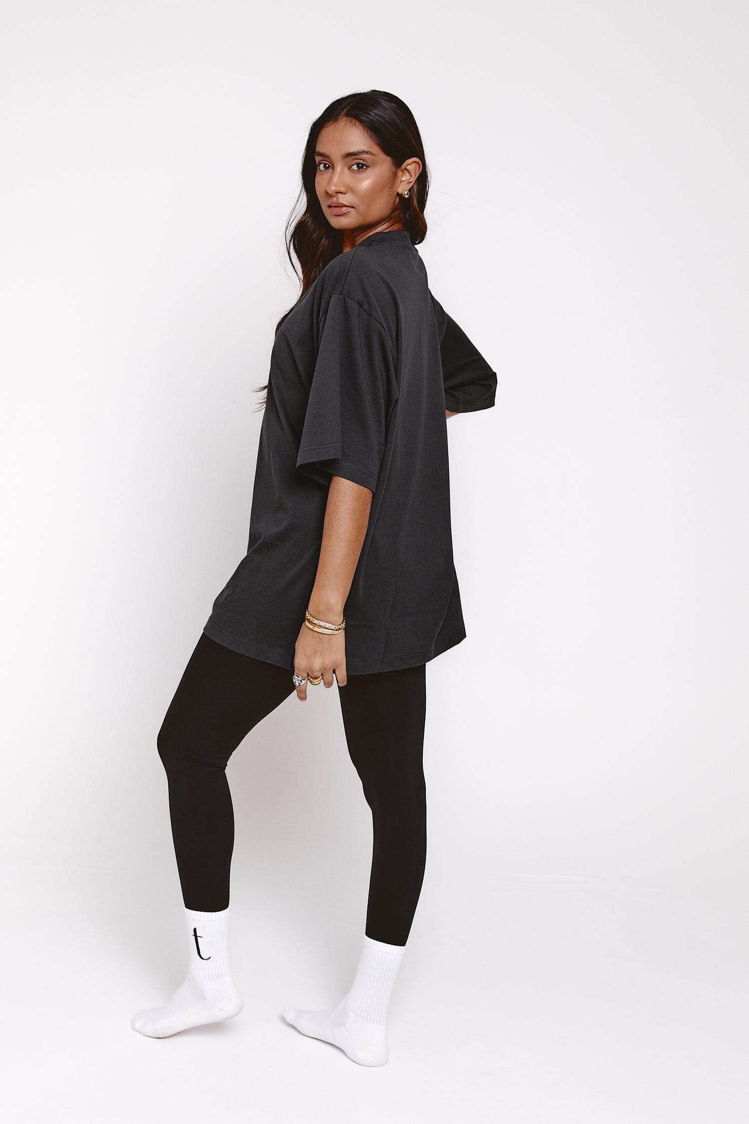 Our unisex Oversized Boxy Tee has a ribbed tonal neckline with dropped shoulders featuring our signature logo to the front. Made from 100% cotton it will feel luxurious when worn. Can be paired with our leggings & socks for women, or for Men it looks great with joggers or jeans. Ladies - for a slimmer fit, size down.